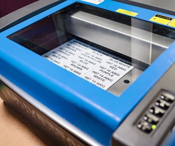 Reverse Engraving is the process of engraving the “under-side” of a substrate, which allows the finished (exposed) side of the substrate to have a smooth surface. Material for reverse engraving is typically 1/16 thick 2-ply acrylic with a clear surface and acrylic paint is usually used to fill the engraved portion of the substrate. Keltour is able to manufacture reverse engraving lamacoids and nameplates in a wide variety of colors.