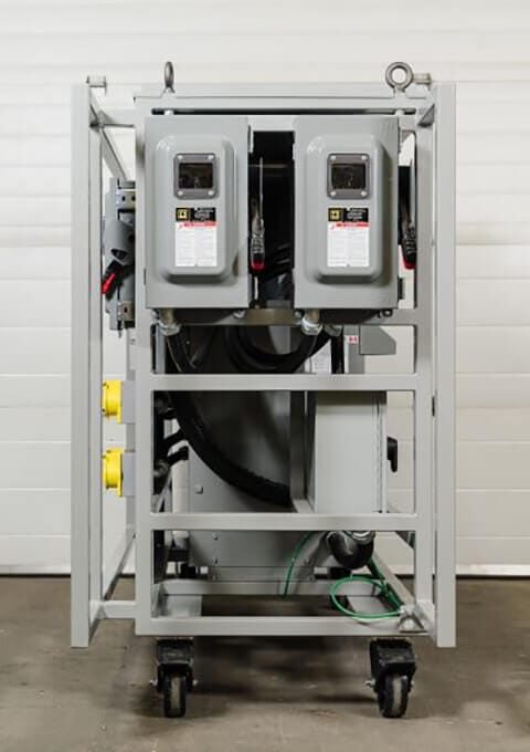 These power carts can provide 480/600V direct power straight from the source. Each output circuit is protected by a fused disconnect switch for safety and easy isolation.
